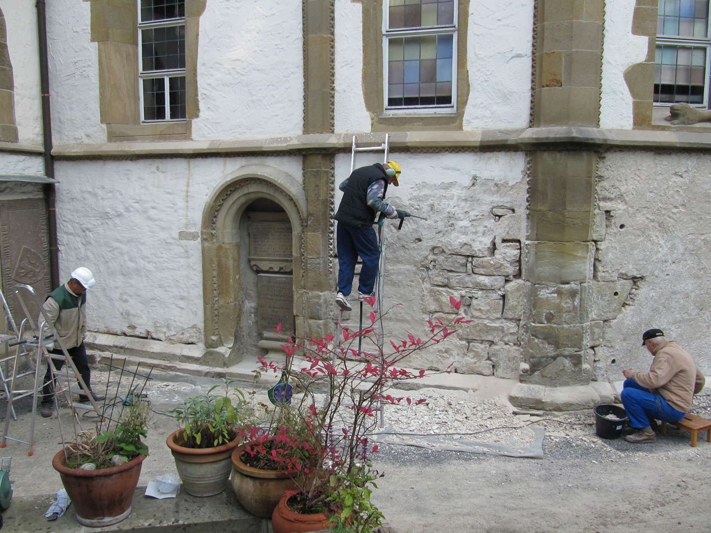 - Sanierung aller Mauern um den Kirchhof einschl. Stützmauer,